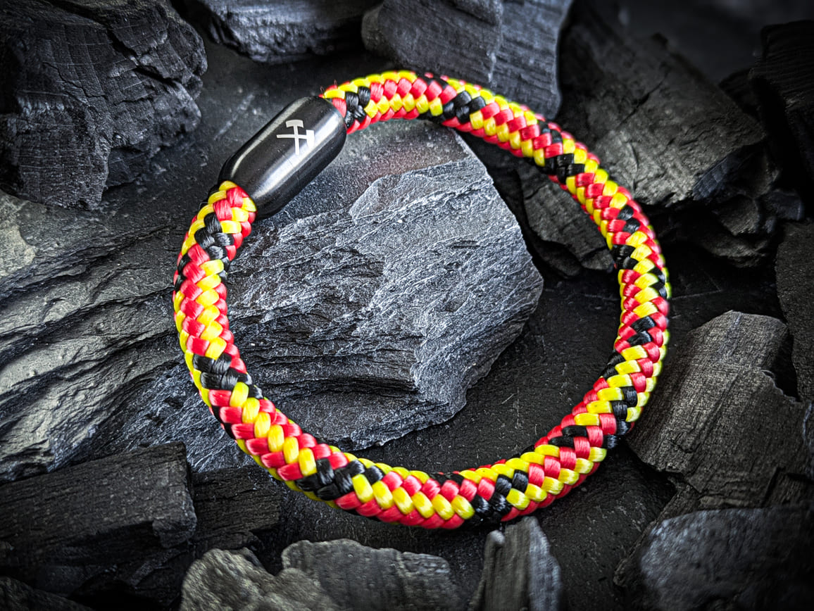 Das PottArmband Carl steht für Veränderung, Aufbruch und den Mut, Neues zu wagen. Handgefertigt in Duisburg aus robustem, spiralgeflochtenem Segeltau und ausgestattet mit einem hochwertigen Magnetverschluss aus Edelstahl, vereint es Widerstandskraft und Eleganz. Sein klares Design macht es zu einem stilvollen Begleiter für Frauen und Männer, die ein Stück Ruhrgebietsgeschichte mit sich tragen möchten.